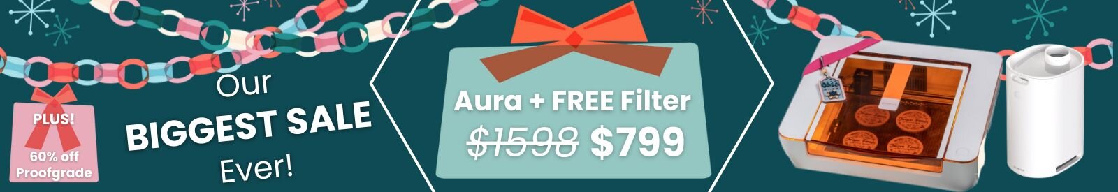 This holiday only, get a $200 gift card when you buy your Glowforge Aura and trade in your old craft machine.