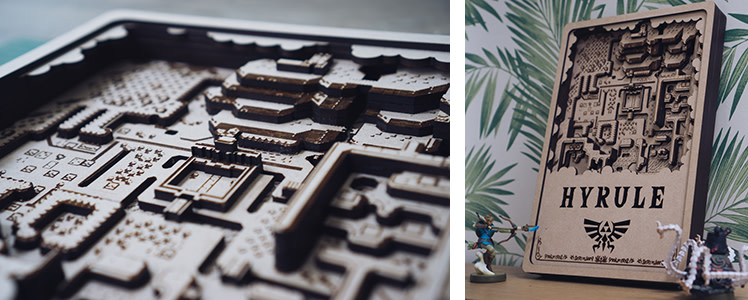 His other favorite? Something totally different: an intricate wooden recreation of Hyrule, the mythical kingdom that acts as the setting for the Legend of Zelda series. “It’s a very complex design that required a whole lot of manual assembly,” he says. “And it celebrates one of my favorite franchises ever. If 8-year-old me could have seen what 33-year-old-me had made there, well I’d have been impressed!”
